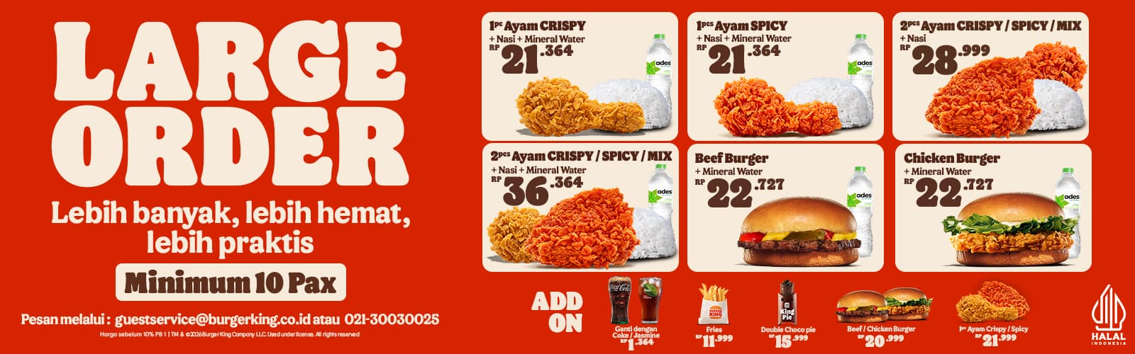 Harga sebelum 10% PB.1 TM & C 2023 Burger King Company LLC. Used under license. All rights reserved.